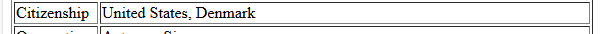 It shows both United States and Denmark in the same cell, next to the label “Citizenship”