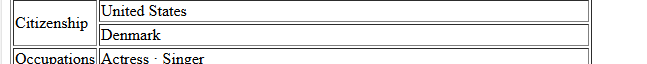 If you go to the actual Wikipedia page, they don’t list both countries in the same cell. They list them on separate lines, and the label “Citizenship” is vertically centered beside both.